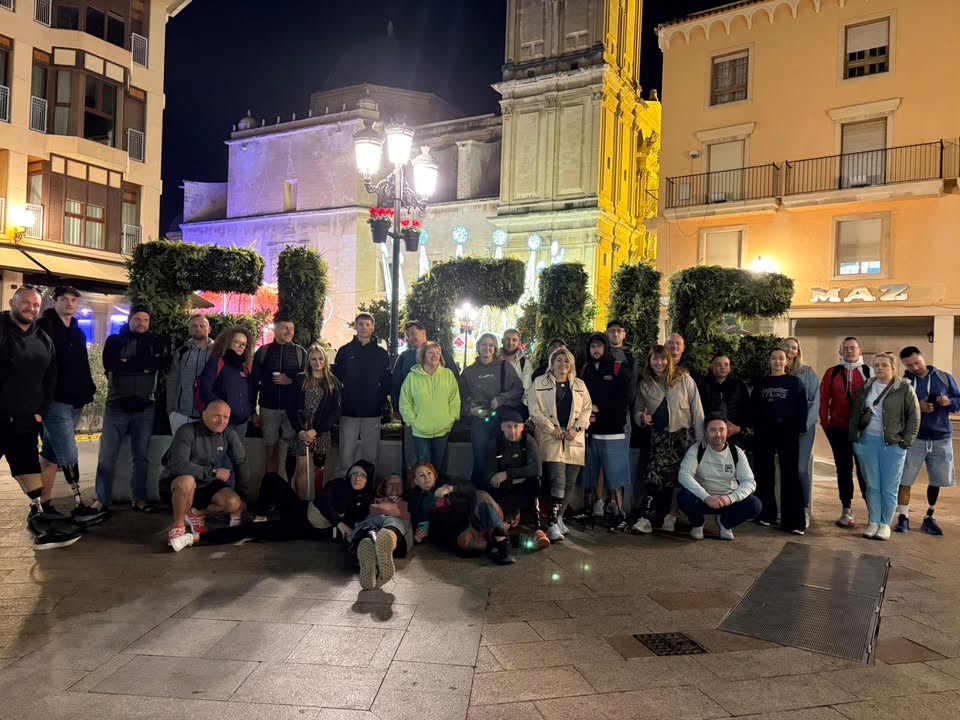 Wieczorem czekała na wszystkich główna atrakcja – wizyta studyjna w Elche w stowarzyszeniu zajmującym się sportem osób z niepełnosprawnościami. Tym razem uczestnicy mieli okazję obserwować trening koszykówki i porozmawiać z zawodnikami. To spotkanie wywarło ogromne wrażenie – pełne pasji, determinacji i pozytywnej energii. Rozmowy o motywacji, trudnościach i pokonywaniu barier na boisku i poza nim stały się prawdziwą lekcją siły ducha.